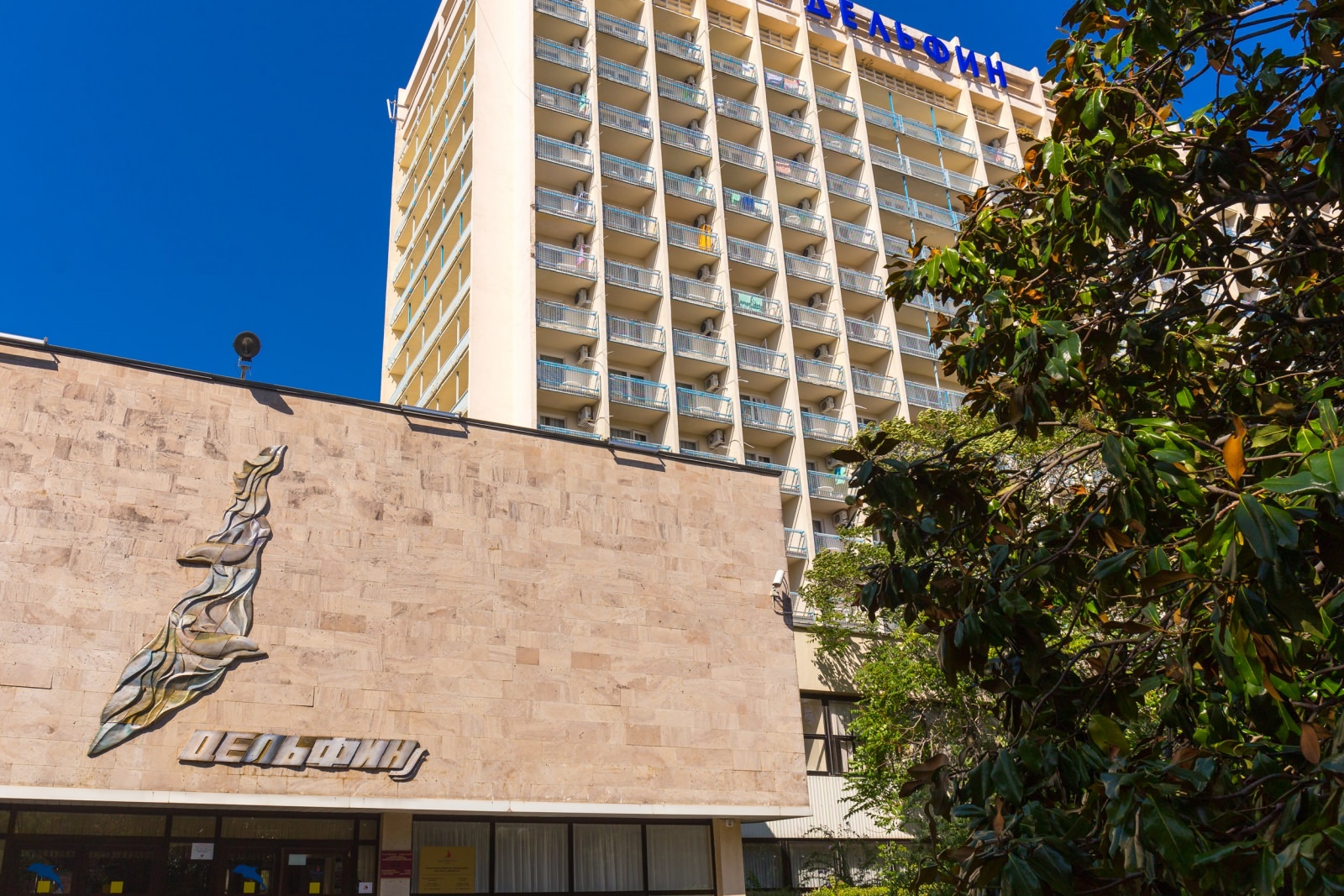 Санаторий «Адлеркурорт» (корпус «Дельфин») находится на Черноморском побережье и подходит для комфортного отдыха.Здесь могут одновременно разместиться больше 400 постояльцев. Гостям доступны удобные номера и обширный спектр услуг. Кроме того, можно приобрести пакет с лечебно-оздоровительным отдыхом. Отсюда есть обзор с высоты птичьего полета на окрестные парки и достопримечательности. До собственного песочно-галечного пляжа – 100 метров. Он обеспечен лежаками, зонтиками, душевыми, кабинками для переодевания и туалетами.